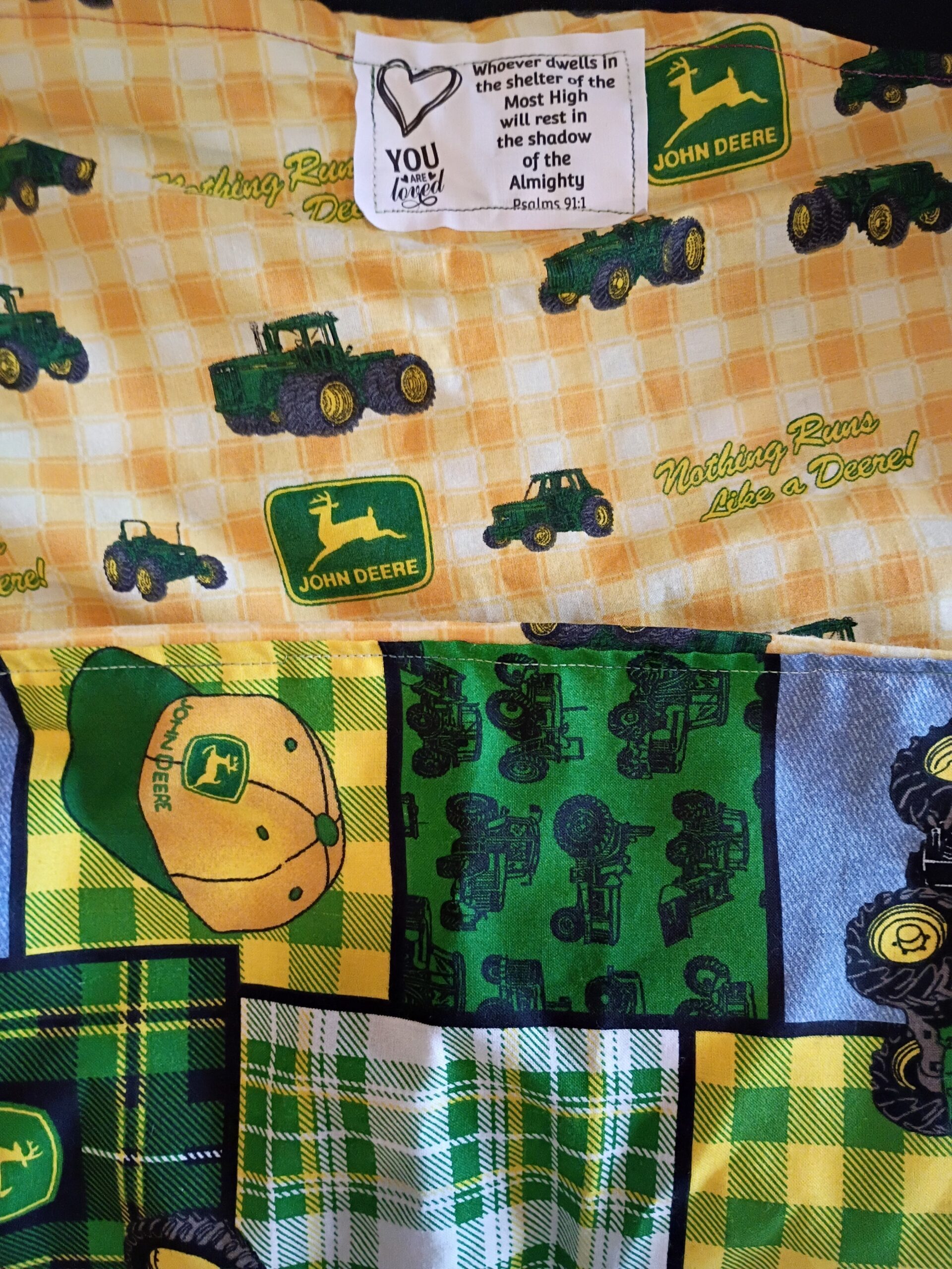 Description: John Deer Tractor pattern. Reversible. One of a kind!
