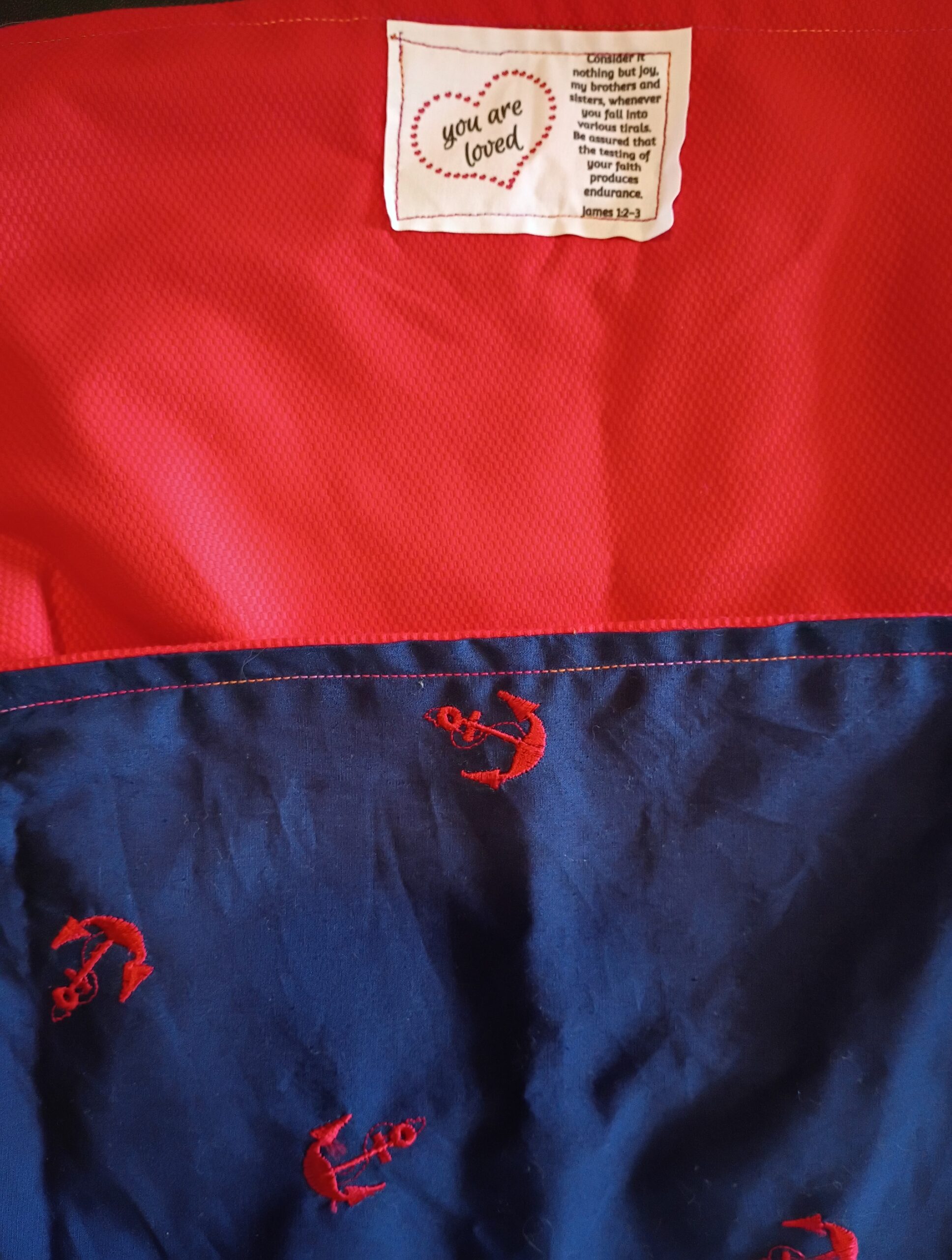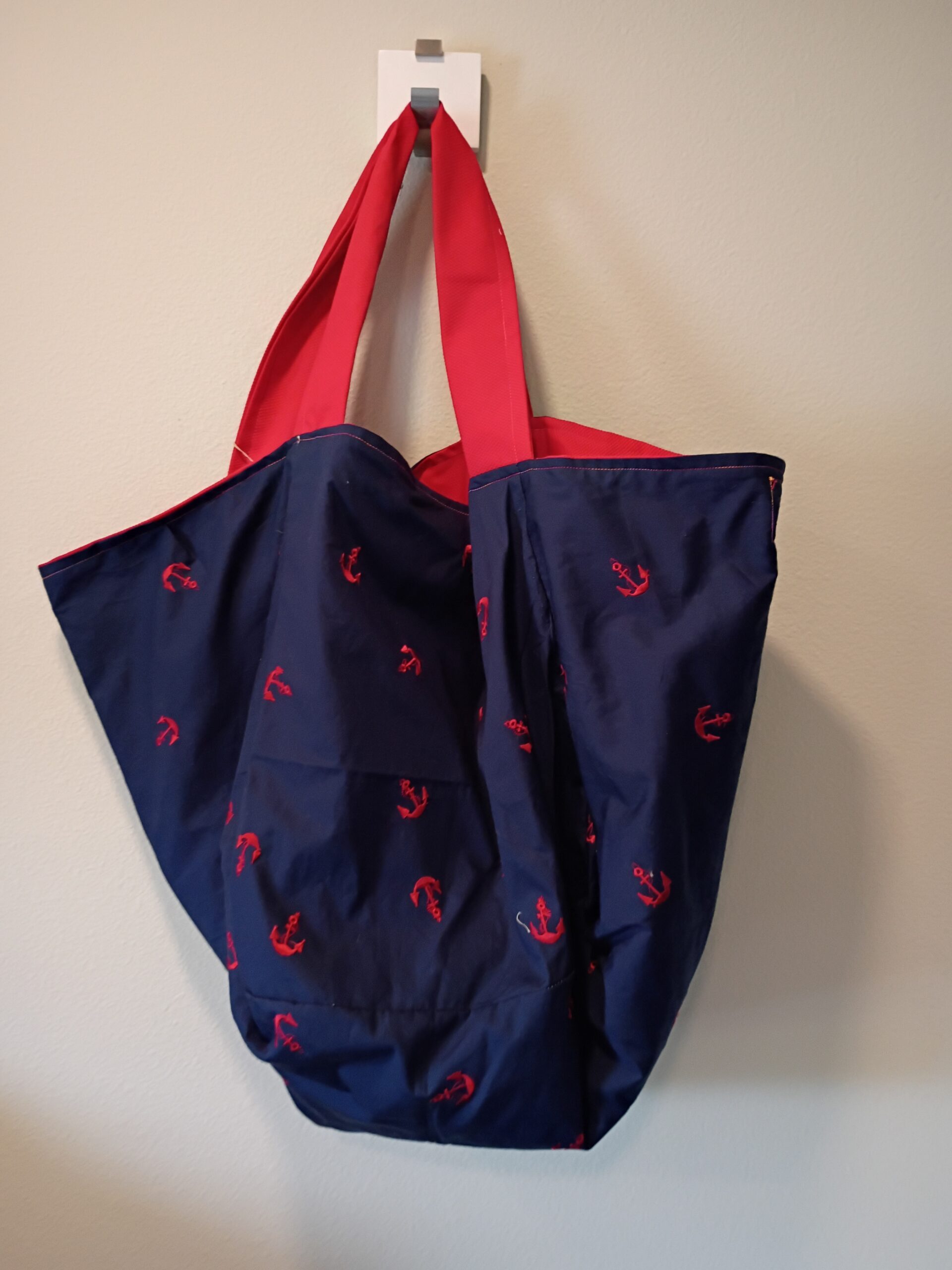 Description: Navy Blue with Red Anchors, with red fabric on the inside. One of a kind!