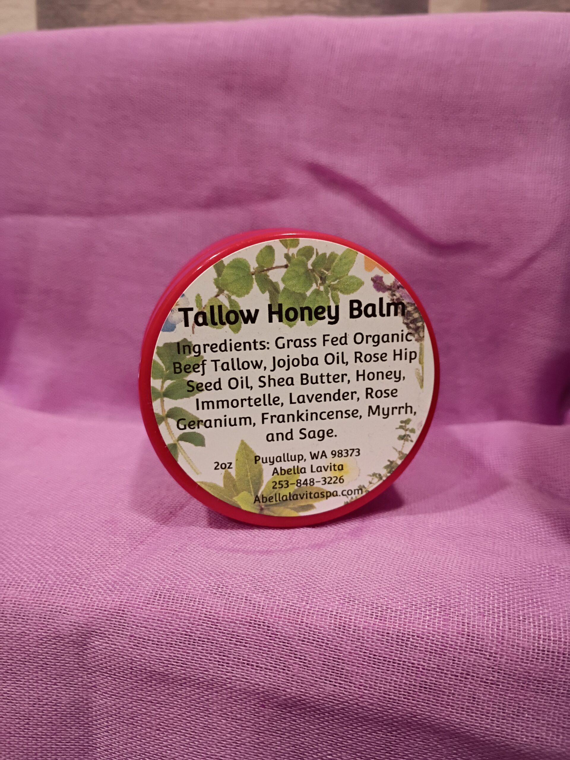 Ingredients: Grass Fed Organic Beef Tallow, Jojoba Oil, Rose Hip Seed Oil, Shea Butter, Honey, Essential Oils: Lavender, Rose Geranium, Frankincense, Sage and Myrrh.
